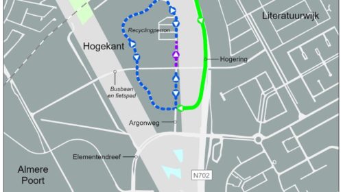Tijdens de afsluiting wordt een omleidingsroute voor verkeer van en naar industrieterrein Hogekant ingesteld, via de Argonweg en Audioweg. Vanaf de Audioweg tot aan de busbaan geldt er tweerichtingsverkeer. Na de busbaan is er vanuit veiligheidsredenen éénrichtingsverkeer ingesteld tot aan het recyclingperron. Deze omleidingsroute levert buiten de spits minder dan 2 minuten extra reistijd op. De route naar industrieterrein Hogekant wordt met omleidingsborden aangegeven. Deze route geldt ook voor verkeer richting Recyclingperron Almere Poort.