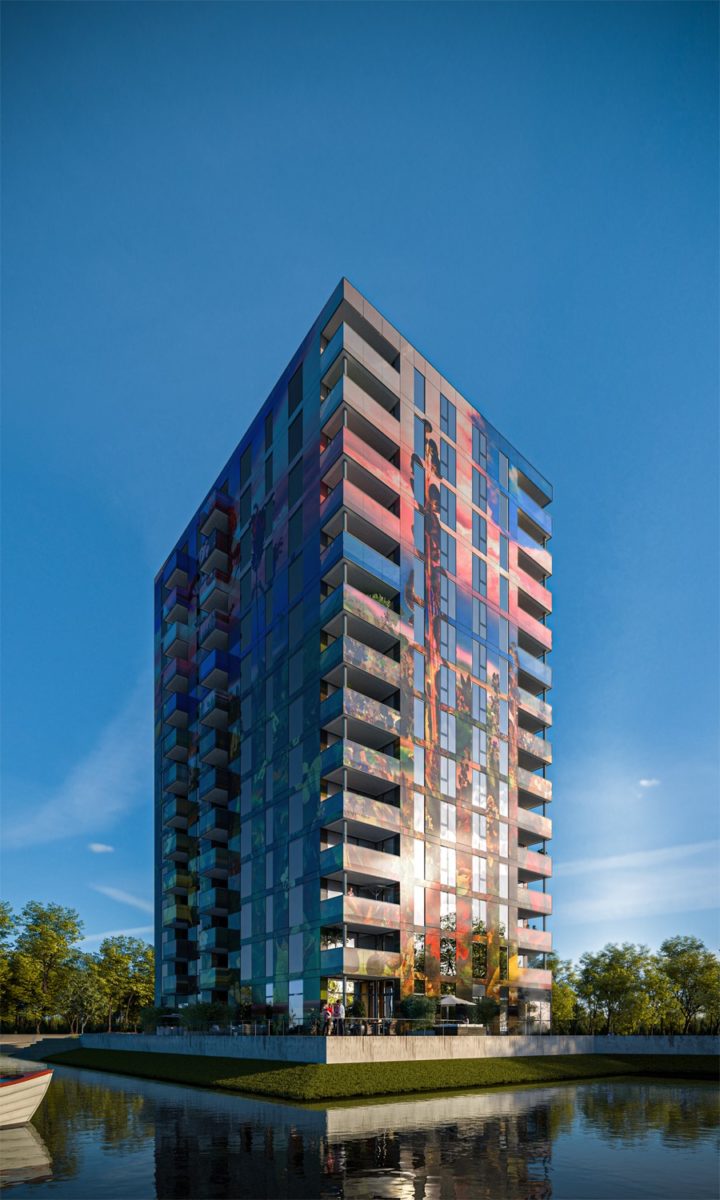 Woontoren Flores met bijzonder gevelkunstwerk beeldbepalend voor Floriade Expo 2022 en de toekomstige stadswijk Hortus