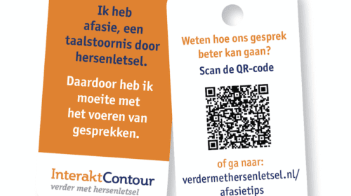 De afasiesleutelhanger werd in 2019 ontwikkeld in samenwerking met mensen met afasie. Zij bleken behoefte te hebben aan een hulpmiddel dat zorgt voor meer bekendheid en begrip voor hun beperking. Op de sleutelhanger staat de tekst ‘Ik heb afasie, een taalstoornis door hersenletsel. Daardoor heb ik moeite met het voeren van gesprekken. Weten hoe ons gesprek beter kan gaan?’. De gesprekspartner kan via een QR-code of link naar een pagina op de website Verder met Hersenletsel van InteraktContour. Daarop staan tips die de gesprekspartner toe kan passen om het gesprek beter te laten lopen.