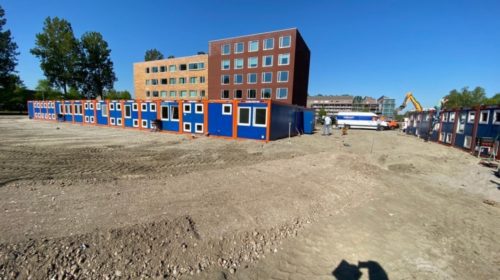 Aan de Wisselweg in Stad zijn eerder dit jaar containers geplaatst voor opvang van mensen die vanwege corona niet bij vrienden of familie onderdak krijgen. Die plekken zijn permanent bezet.