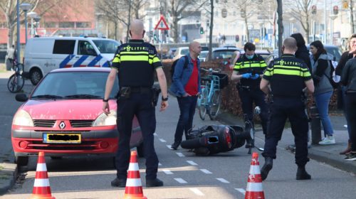 Op de kruising kwam een scooterrijder in botsing met een personenauto. Mogelijk hebben de bestuurders elkaar over het hoofd gezien. De scooterrijder kwam bij het ongeval ten val en is door het ambulancepersoneel gecontroleerd op verwondingen.