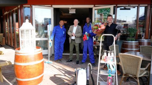 Vandaag meldde het schoonmaakteam van HYGENIQ, bewapend met een Clean Air fogger en een cadeaupakket met schoonmaakproducten, zich bij Brasserie ThuisHaven. In twee uur tijd werd de zaak van top tot teen gereinigd. Een doek over de tafels, de glazen door het sop en een dweil door het toilet. En natuurlijk: zo hygiënisch en veilig mogelijk met inachtneming van de coronamaatregelen.