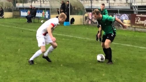 foto: Mike de Blieck probeert zijn direkte tegenstander uit te spelen.