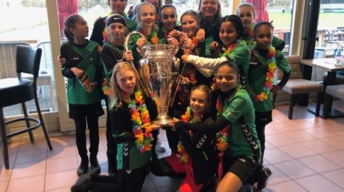 In het clubhuis van de club werd deze mooie prestatie dan ook feestelijk gevierd. De meiden werden onthaald en flink in het zonnetje gezet. Met diverse consumpties kon het feestje beginnen en werden alle speelsters apart gehuldigd en voorzien van een mooie medaille als herinnering. Een mooie prestatie natuurlijk voor dit team en was er groot applaus door de ouders en fans van de ploeg. Ook hulde voor de ouders en begeleiders die hun meiden altijd hebben gesteund en een dikke pluim verdienen. Het was lang onrustig in het clubhuis maar uiteindelijk ging iedereen tevreden en in feeststemming weer naar huis.