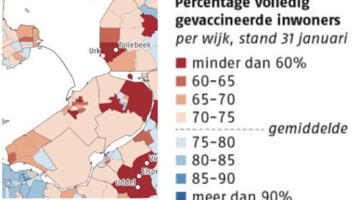 Het Nederlands Dagblad publiceert vandaag recente cijfers over de vaccinatie in wijken. Flevoland scoort tussen 75% en niet alleen in Urk lager dan 60%.