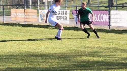 foto: Mike de Blieck op weg om de tegenstander uit te spelen.