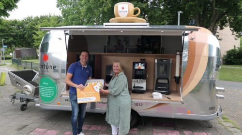 Basisschool Digitalis heeft van hun koffiecorner een ontmoetingsplek gemaakt voor personeel én ouders. Daarom is de Almeerse school door Fortune Coffee uitgeroepen tot de beste koffiecorner van regio het Gooi. Karin Klein, managementassistent bij Digitalis: “We zijn zó blij dat we hier nu weer zonder coronamaatregelen gezellig bij elkaar kunnen komen in onze koffiecorner. Ook de ouders van onze school zijn elke ochtend van 08.30-09.00u welkom om hier samen een kopje koffie of thee te drinken.” Om dit te vieren kwam de koffietrailer van Fortune op maandag 27 juni langs voor een gezellig ontmoetingsmoment.