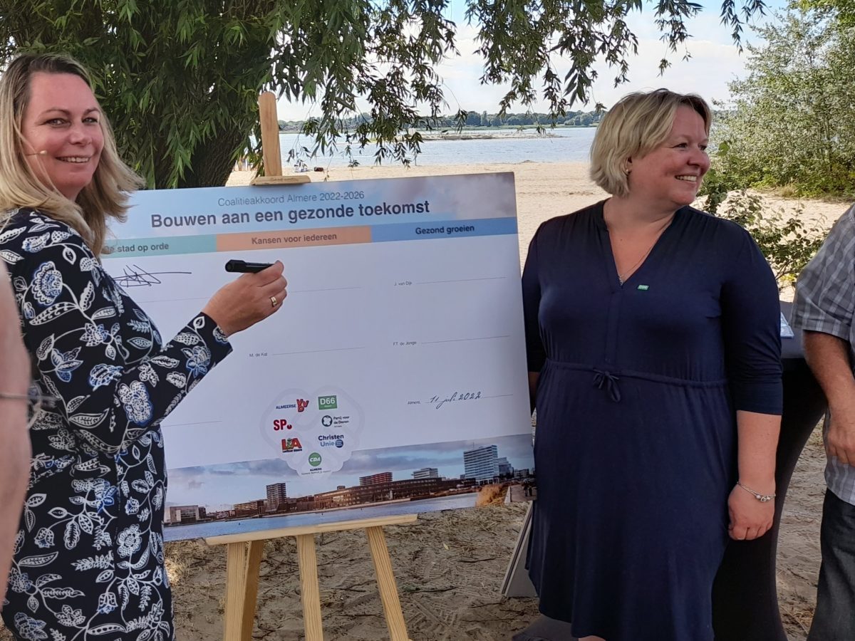 Holter noemt het een unicum voor Nederland dat in het college een wethouder voor de Partij voor de Dieren zitting neemt. De fractievoorzitters presenteerden maandag hun plannen op het Almeerderstrand.