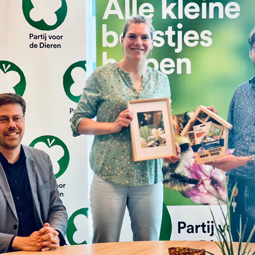 De twee winnaars ontvingen een insectenhotel en biologisch bloemenzaad. Deze prijzen dragen bij aan het verder versterken van een gunstige leefomgeving voor insecten en het ondersteunen van hun belangrijke rol in ons ecosysteem.