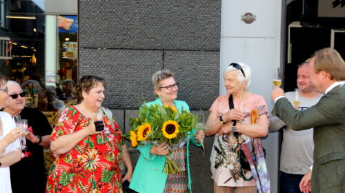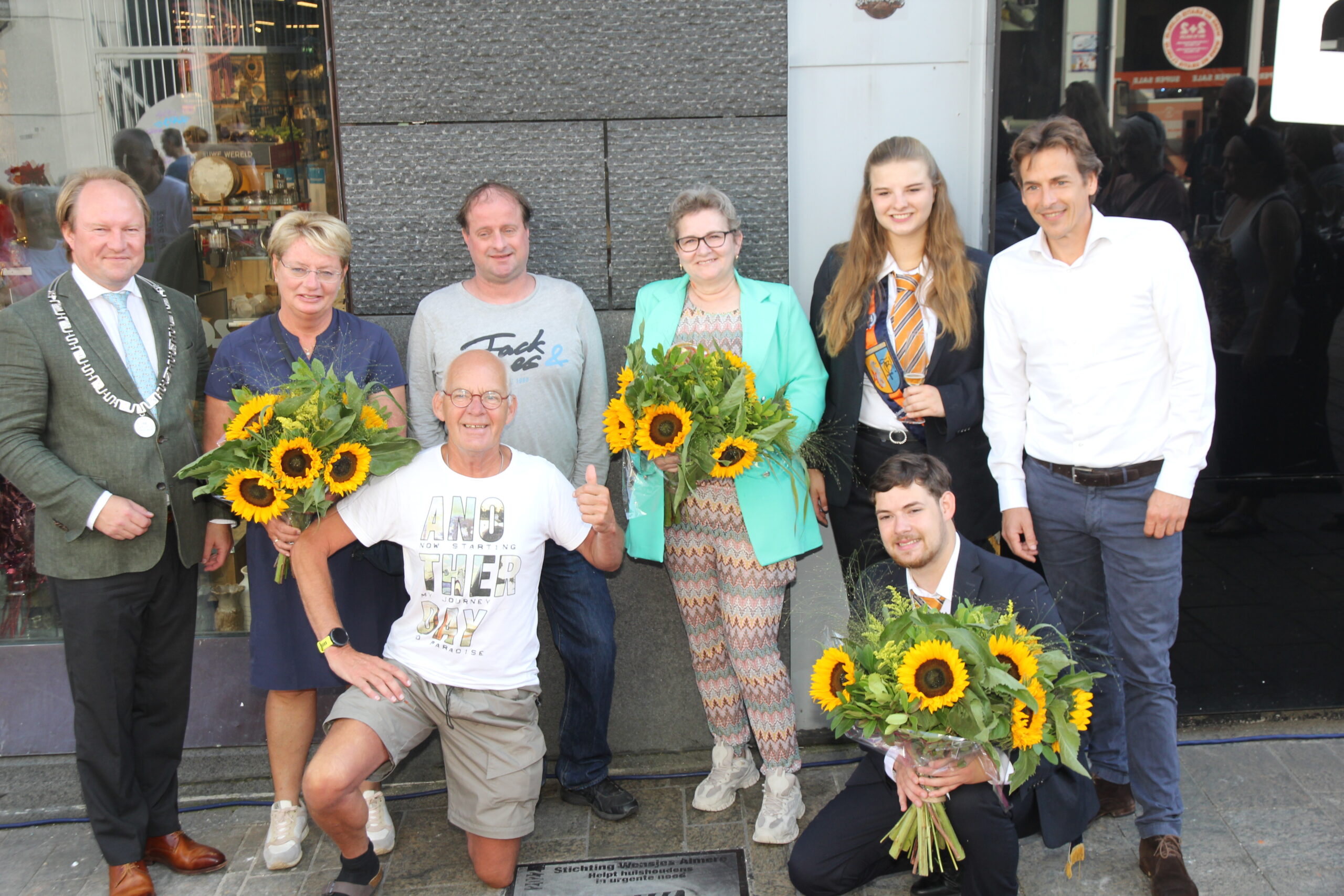 Els van Boxtel, oprichter van de stichting, heeft samen met burgemeester Hein van der Loo de tegel in de Schutterstraat zichtbaar gemaakt.