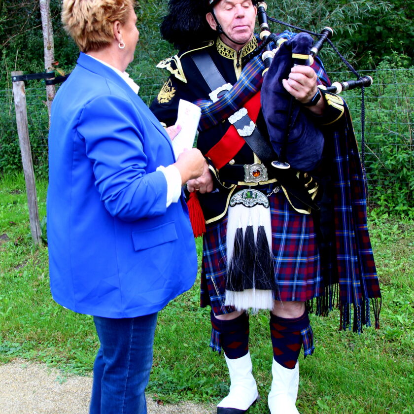 De aanwezigen werden toegesproken door Wim Kanis van het Leger des Heils, Lobke Houtveen van Pax en wethouder (loco burgemeester) Roelie Bosch namens de gemeente. De vredevlag werd gehesen en alles muzikaal opgeluisterd door een doedelzakspeler.