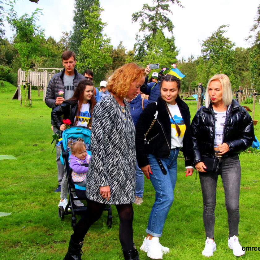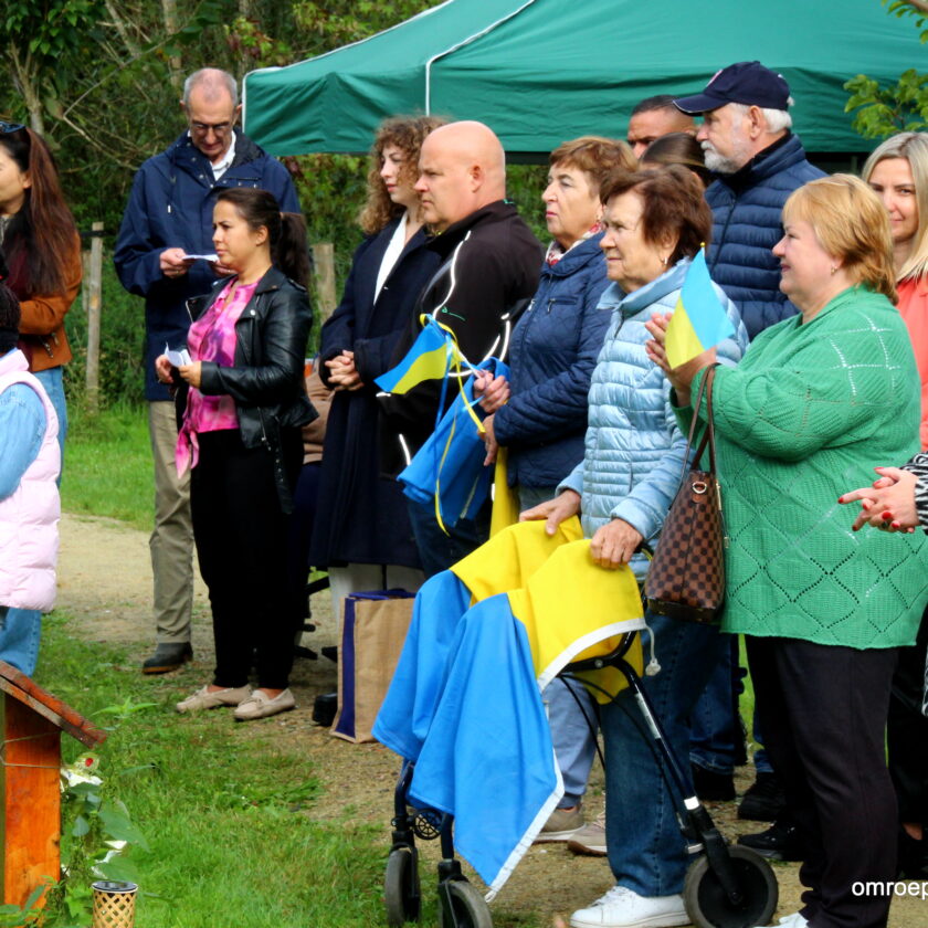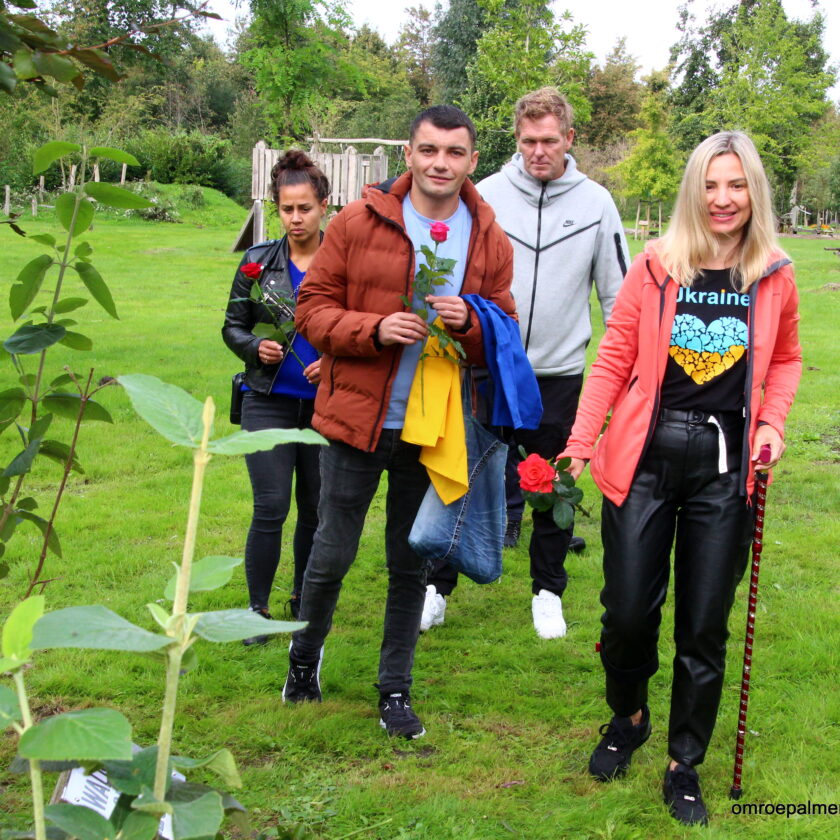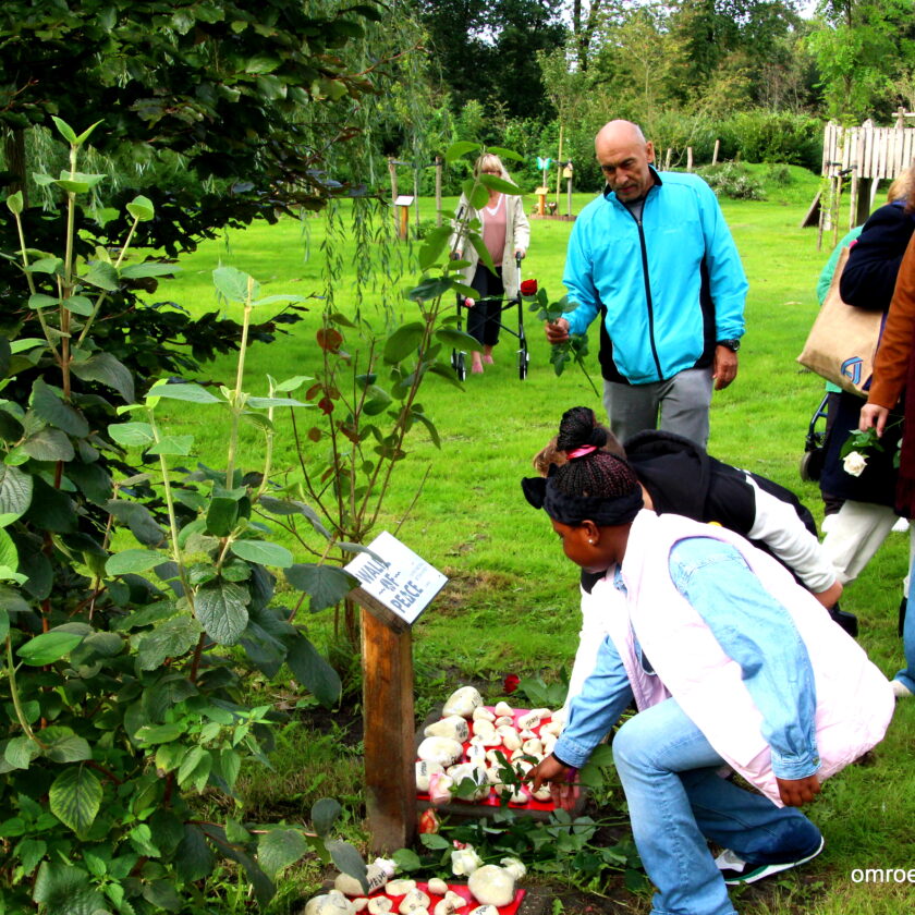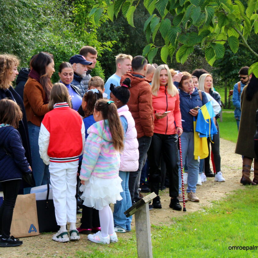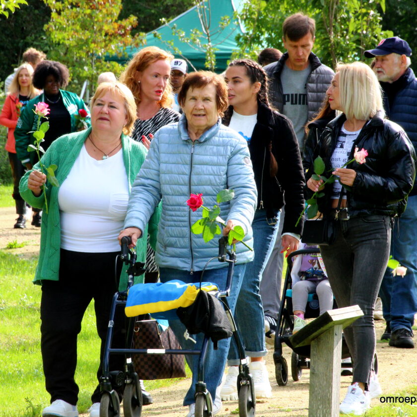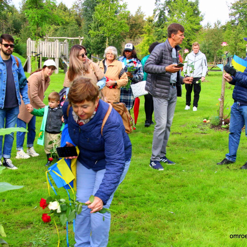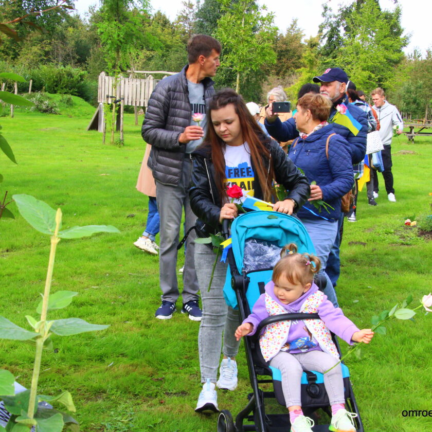 Tevens zong er een kinderkoor van een basisschool uit de Stripheldenbuurt en niet te vergeten hieven de aanwezige mensen uit Oekraïne hun volkslied aan. Een mooie ceremonie die vrede in ons hart bracht. Tevreden verlieten de aanwezigen het prachtige Luierpark waar we volgend jaar opnieuw stil zullen staan bij Vrede en hoe we die kunnen vinden en behouden met elkaar.
