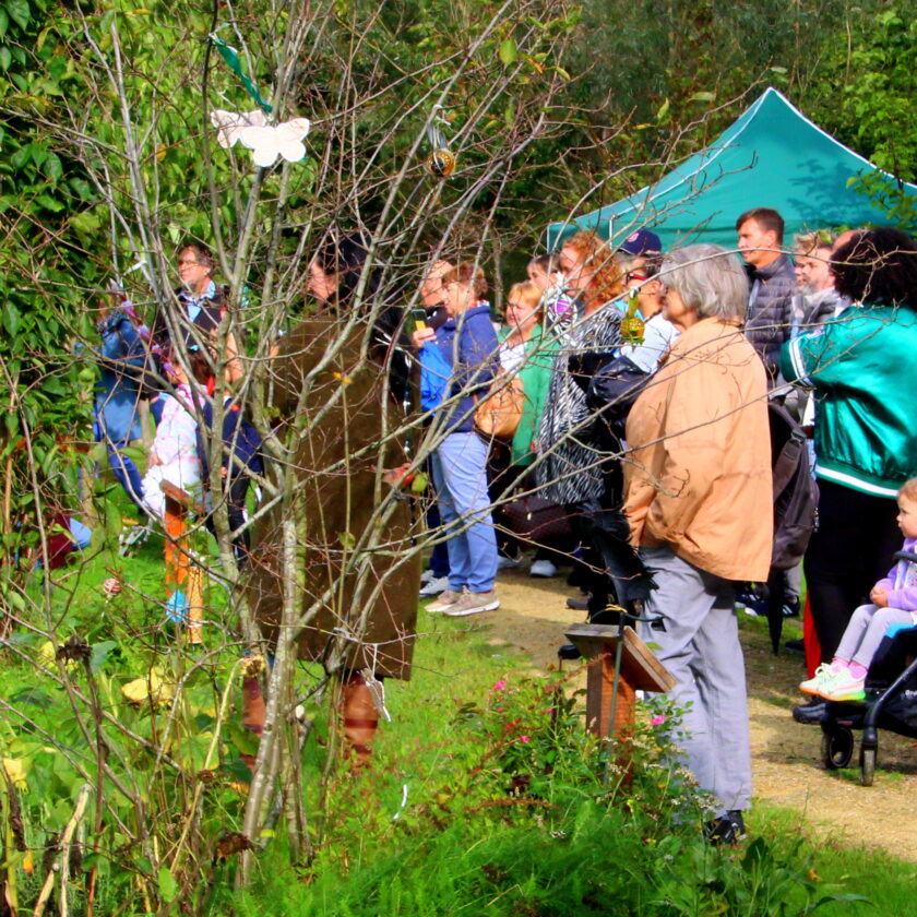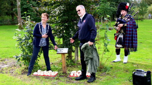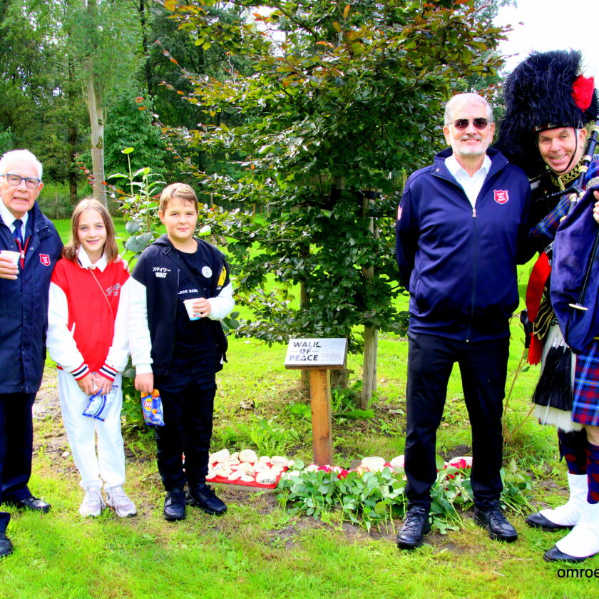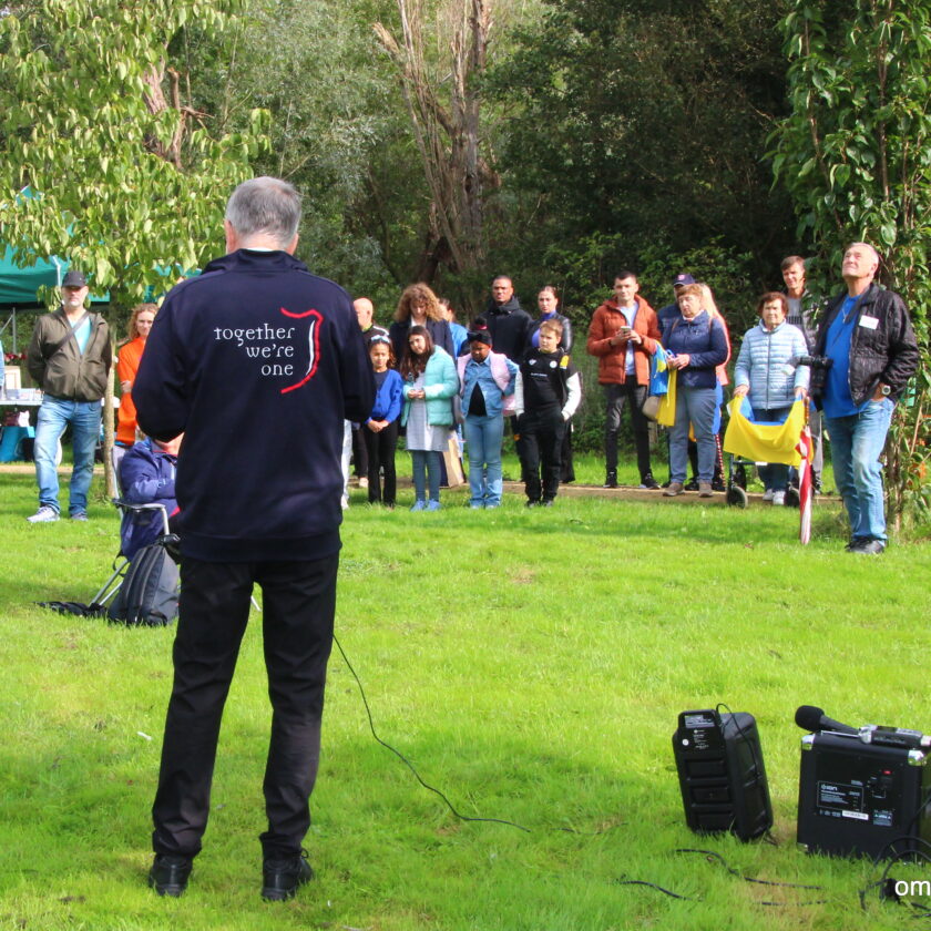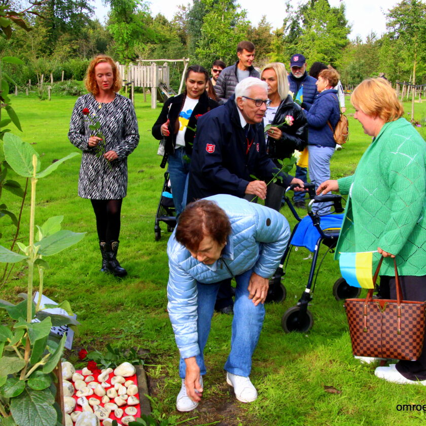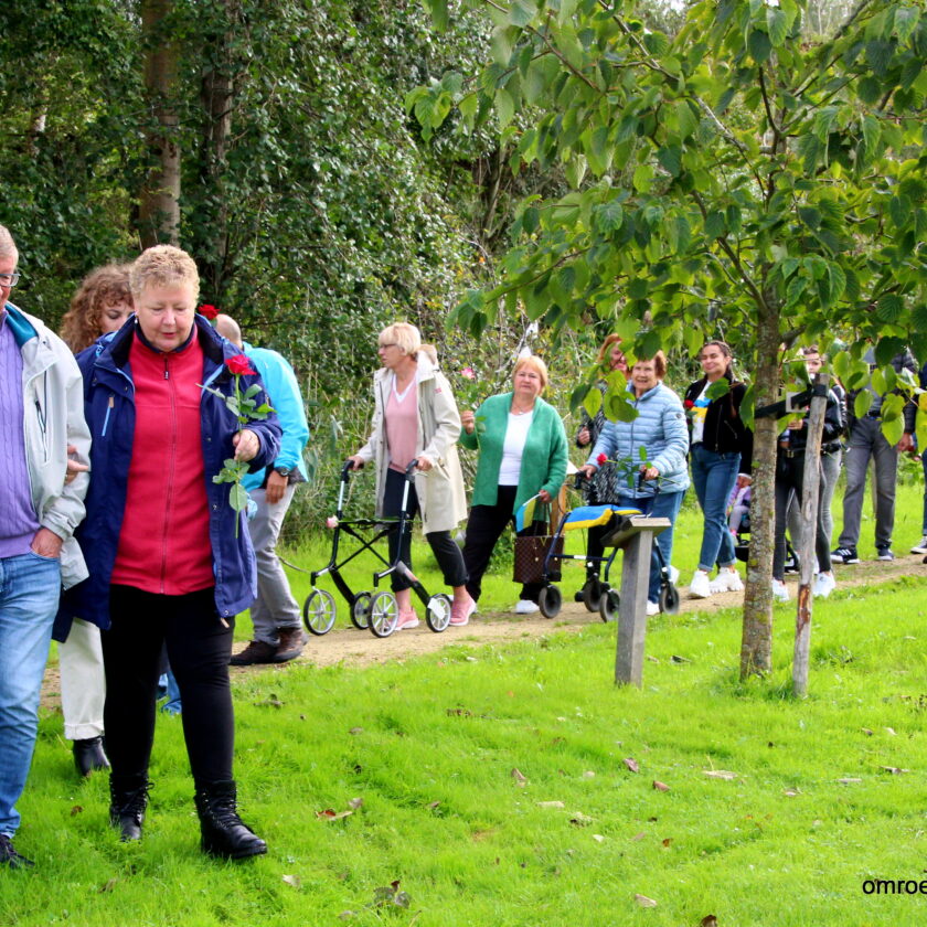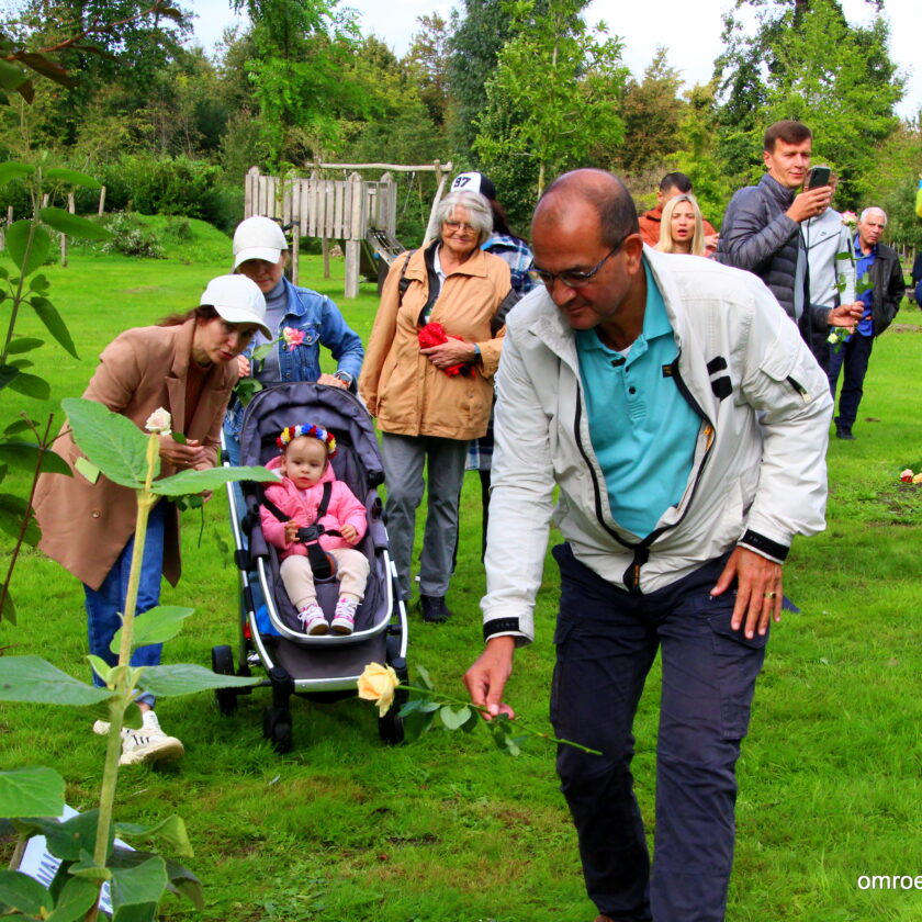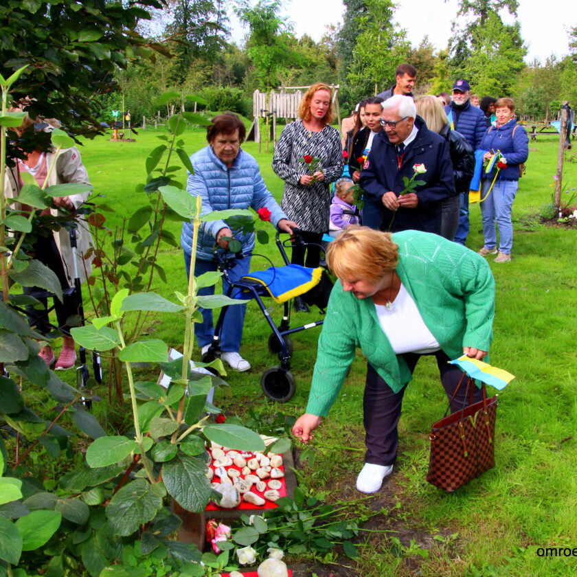 Tevens zong er een kinderkoor van een basisschool uit de Stripheldenbuurt en niet te vergeten hieven de aanwezige mensen uit Oekraïne hun volkslied aan. Een mooie ceremonie die vrede in ons hart bracht. Tevreden verlieten de aanwezigen het prachtige Luierpark waar we volgend jaar opnieuw stil zullen staan bij Vrede en hoe we die kunnen vinden en behouden met elkaar.
