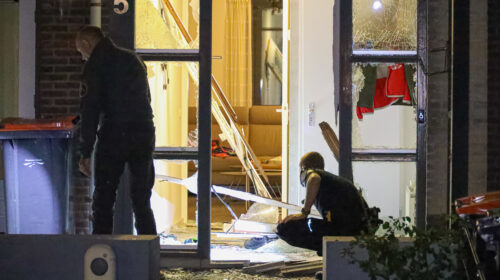 Niemand raakte gewond toen er iets bij de voordeur explodeerde. De harde knal was te horen in de buurt. Er is veel schade aan de woning en er ligt veel glas op de oprit van de woning. Het onderzoek door de forensische opsporing aanwezig en doen onderzoek.