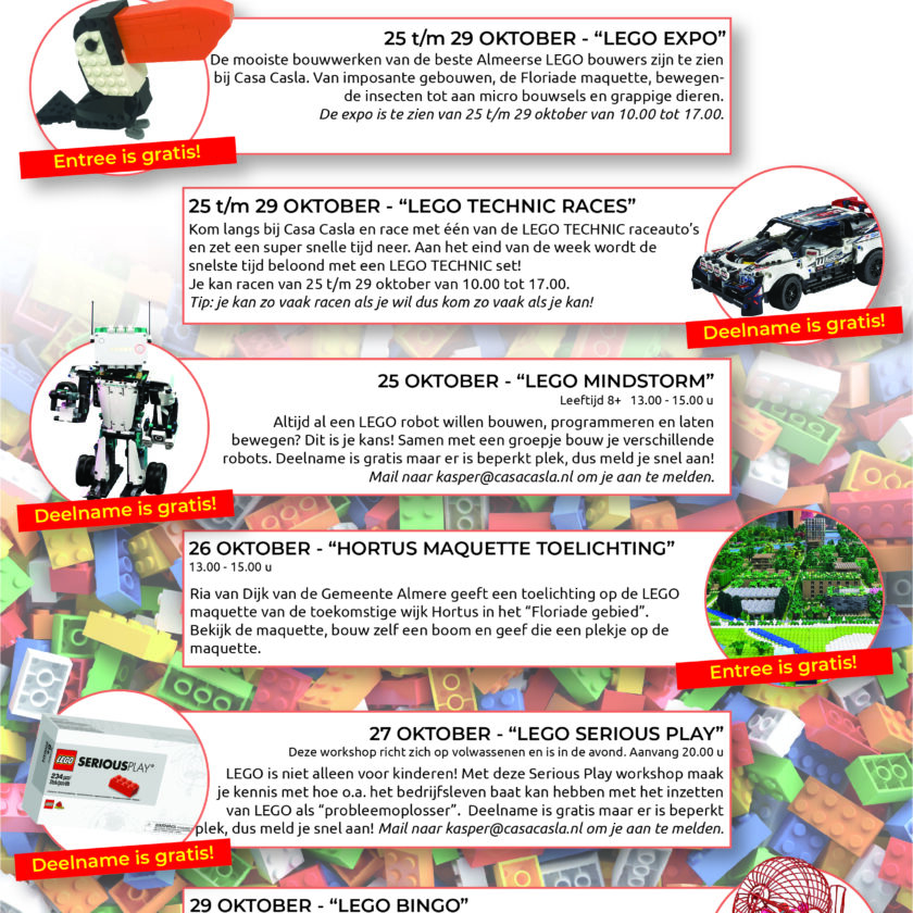 Tijdens de herfstvakantie hoef je je niet te vervelen. In Casa Casla is er 25 t/m 29 oktober LEGO-week! Elke dag kun je gratis aan iets deelnemen.
