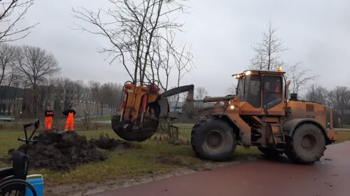 De eerste plantvakken zijn gemaakt zodat de bomen de komende weken geplant kunnen worden. Het zijn grote vakken van 4 bij 4 m en 2 meter diep. Zo hebben de bomen een goede groeiplaats om zich te kunnen ontwikkelen, zodat ze groot en oud kunnen worden. Voor het einde van het jaar zitten alle bomen in de grond.