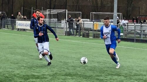 foto: Waterwijk-speler Tim Klaasen-Bos(r) gaat langs zijn tegenstander.