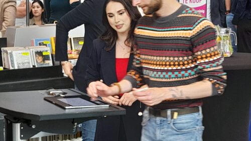 Opvallend is dat de villawijk Overgooi, ooit bedoeld als overloop van ’t Gooi, een gewone stadswijk wordt en voorzieningen krijgt die daar bij horen. De coalitie wil ook bouwen op het Odeonpark achter het politiebureau. Dat moet een hoogstedelijk gebied worden, dat aansluit bij het huidige centrum. Op het terrein moet wel ruimte blijven voor de komst van de vierde Technische Universiteit van Nederland. (foto: Aya Selman, PvdA en Kjell van Wijlandt, PvdD, tekenen het akkoord)