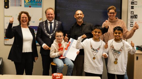 Almere heeft er weer een kei bij. Burgemeester Hein van der Loo reikte samen met kinderburgemeesters Harkiran en Ekam een Almeerse Kei uit aan Dave (9).