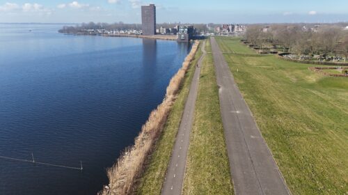 Foto: De Gooimeerdijk-Oost die misschien opengesteld wordt voor autoverkeer (Foto: © Robert Mienstra)