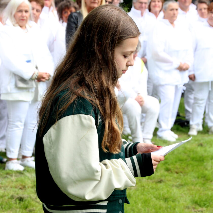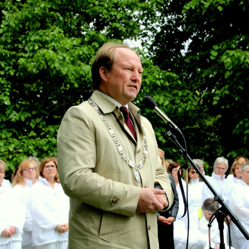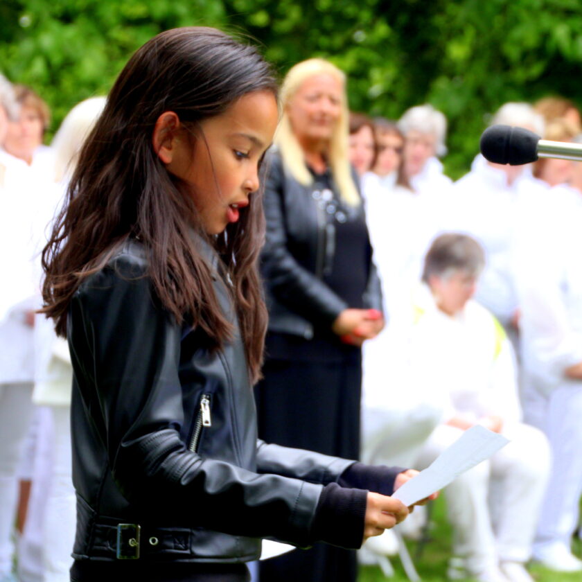 Diverse sprekers en een groot koor waren aanwezig.