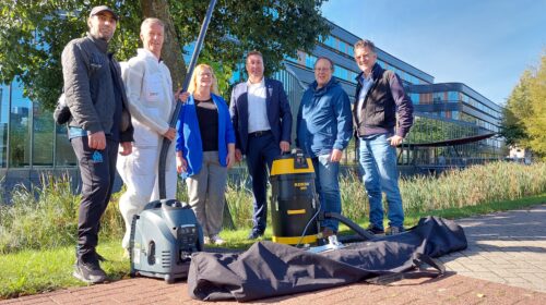 Gedeputeerde Harold Hofstra van provincie Flevoland overhandigde onlangs een speciale stofzuiger aan de vrijwilligers van de taskforce Aziatische hoornaar Flevoland.