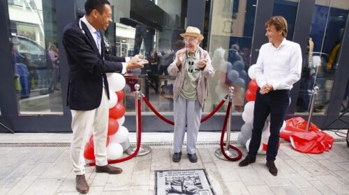 Foto: Opa Joop bij de onthulling van zijn tegel (foto: aangeleverd)