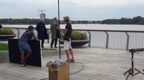 Aan de Koetsierbaan in Stad werden maandag opnames gemaakt voor de nieuwe tv-serie Swanenburg. Acteurs Aus Greidanus en Frederik Brom, die hoofdrollen vertolken, liepen pratend…